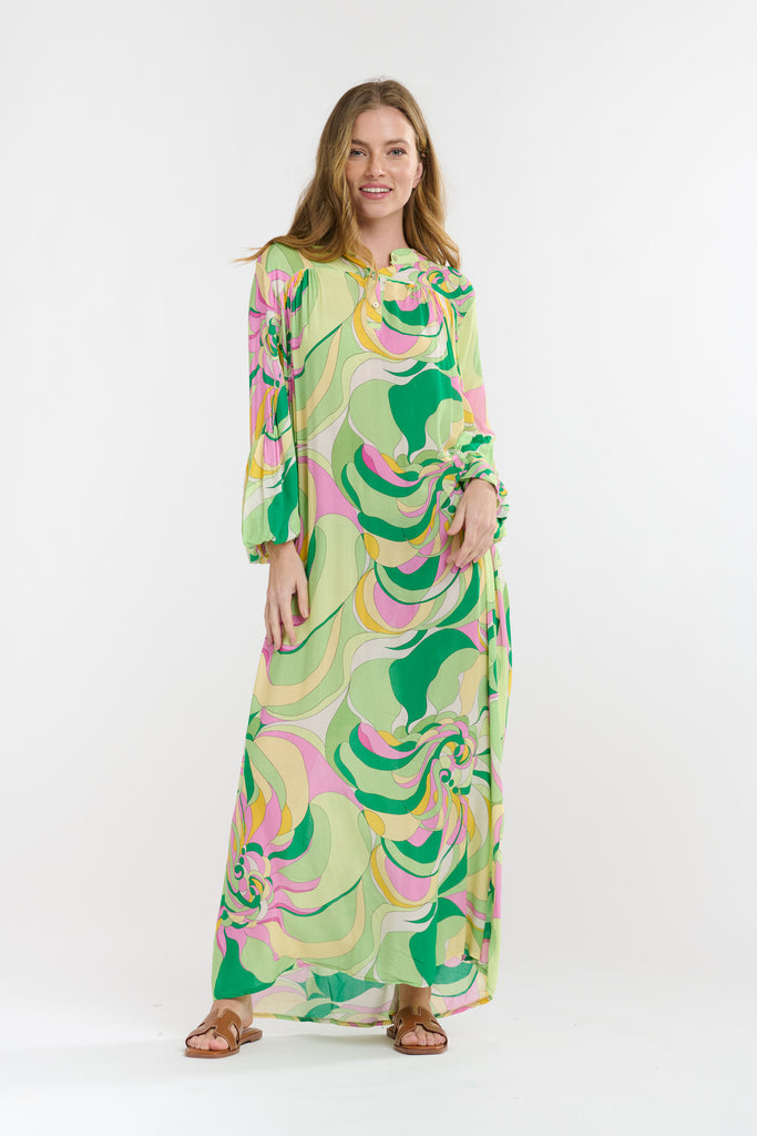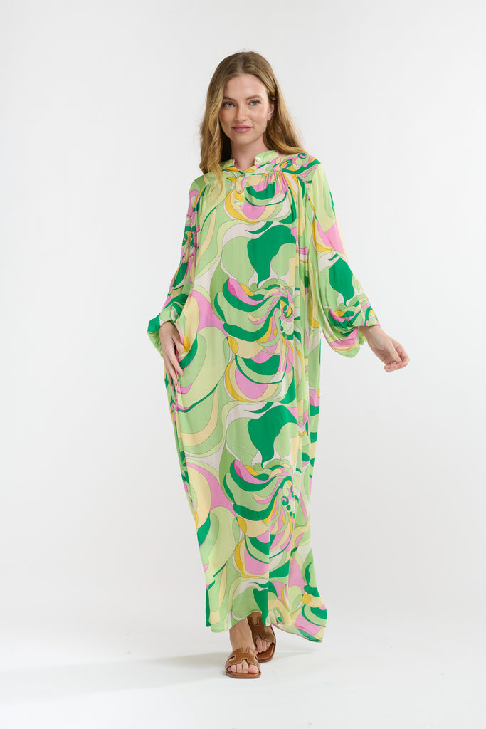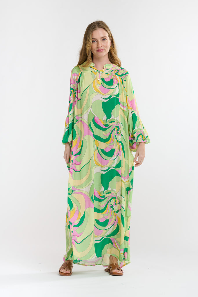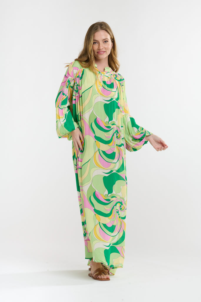 GREEN SWIRL BILLOW DRESS