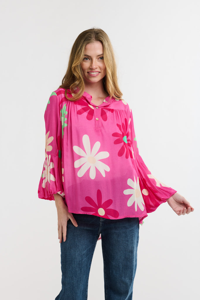 The Italian Star Billow Blouse with its floral print, flattering V-neck and stylish balloon cuffs is a one size masterpiece. This blouse will be a wardrobe favourite for years to come.