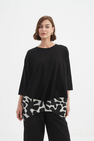 The Billow Print Combi Top features a relaxed, oversized fit with a flattering billow silhouette. With 3/4 sleeves and a unique printed combi design, it offers effortless style and comfort, perfect for casual days when you want a standout look with ease.
