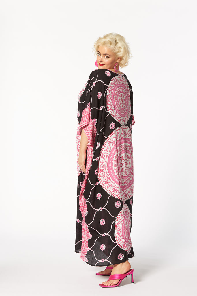 With 25 years of expertise in perfecting long kaftans, this brand offers one of the most affordable, premium options available. Crafted from 100% rayon, the kaftan is naturally breathable and luxuriously soft. Featuring a simple front v-neck and a true free-size design that accommodates sizes 10 through 26, it provides a comfortable fit for virtually everyone. The “Bling” is highlighted by meticulously hand-sewn sequins that add a touch of elegance. The kaftan measures 90cm in width and approximately 120cm in length.