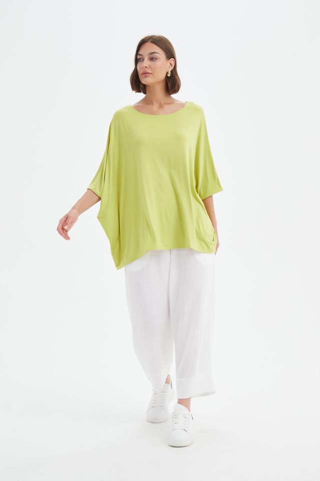 The oversized boxy tee showcases dolman sleeves and a round neckline, designed with generous, relaxed sizing. Crafted from Tirelli’s soft, breathable cotton jersey, each piece offers a perfect balance of comfort and quality. Ideal for layering or wearing solo, this elevated basic is thoughtfully designed for everyday wear and effortless style.