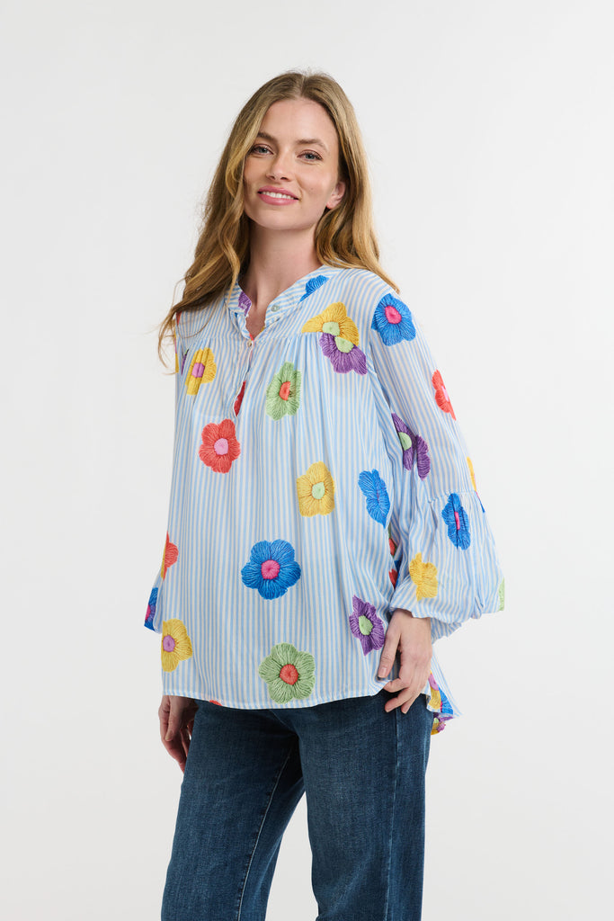 The Italian Star Billow Blouse with its floral print, flattering V-neck and stylish balloon cuffs is a one size masterpiece.  This blouse will be a wardrobe favourite for years to come.