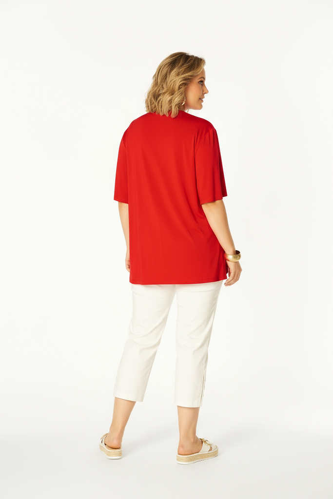 This vee neck top is crafted from a comfortable polyester and spandex blend, designed with a front stitched pleat and short sleeves for a refined look. Measuring 31 inches (79 cm) in length, it offers versatile styling options that work seamlessly with both pants and skirts.